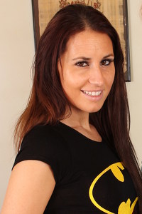Sexy red lips mature lady with a hairy pussy and big natural saggy tits.