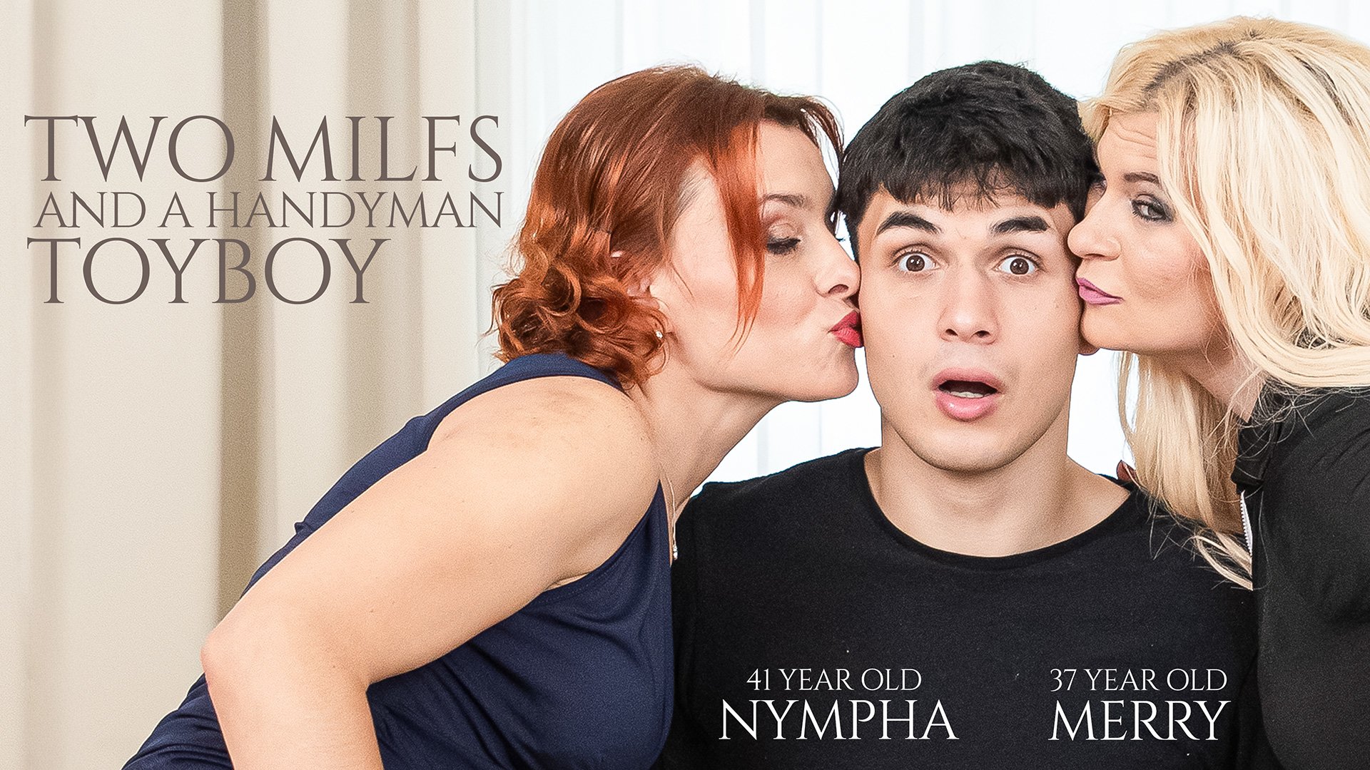 When 21 year old handyman Bruno got called to fix a frame in the bedroom, he didn't expect to meet two horny MILFs, the 37 year old Merry and the 41 year old Nympha. They seduced him into a wild old and young hardcore threesome and the toyboy never had a better day at work!
