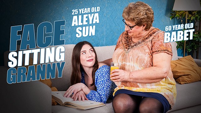 Hot teeny Aleya Sun gets her stepgrandma Babet's big ass on her face to eat out!