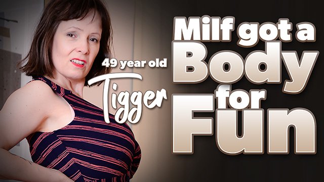 British MILF Tigger shows off her great rack and masturbates her shaved pussy