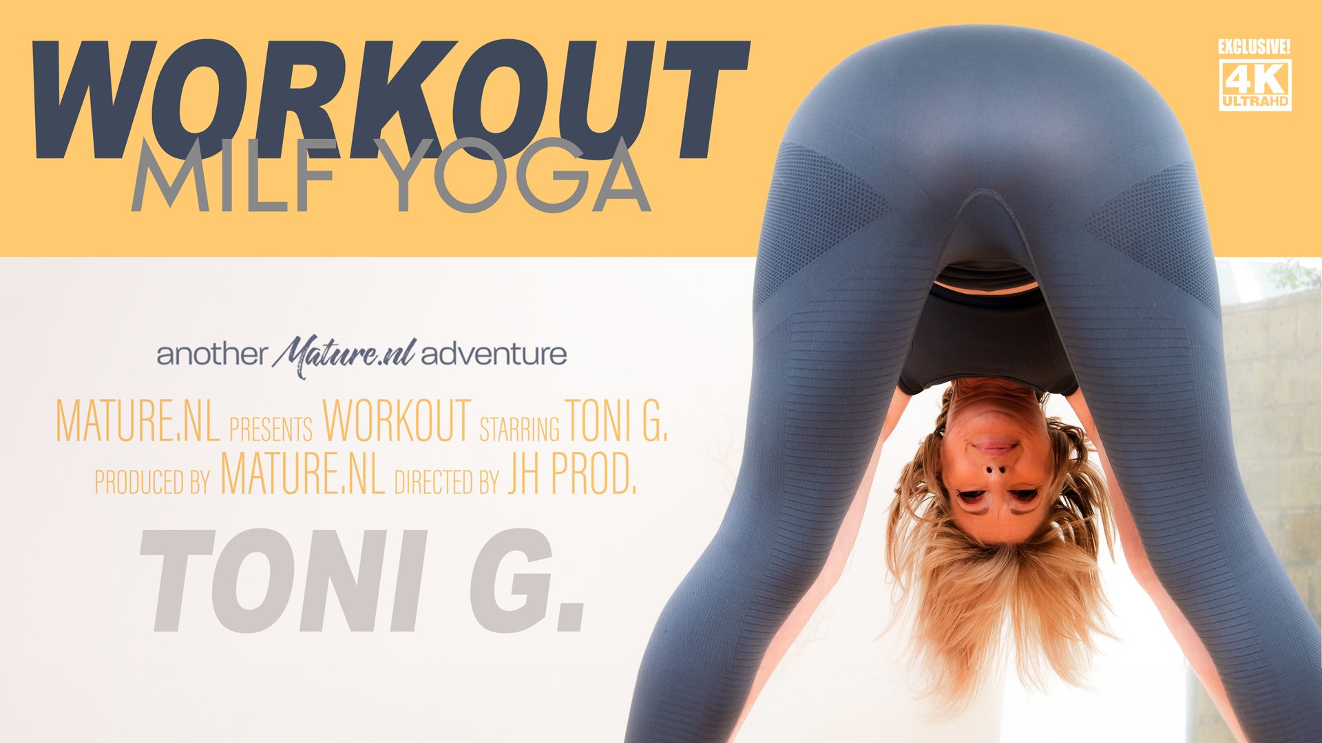 British MILF Toni G. is doing her yoga poses and feels her mature slim body enjoying these exercises. Her naughty MILF mind often tends to wander off during her routine workout and this morning is no different. She's thinking about the other night and the fact that she had had great sex. Her young male lover couldn't get enough of her hot slim body and his fat cock had kept on pounding her mature pussy and had made her come several times. It had been a very satisfying night and the thought of that night makes her feel hot all over again.