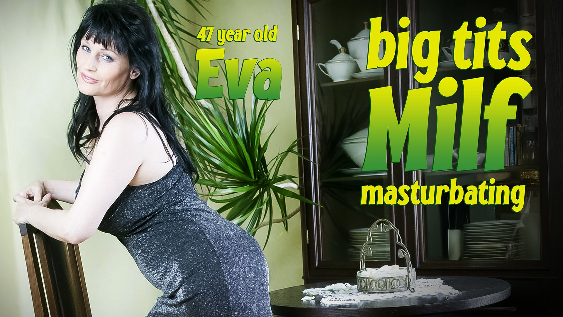 When 47 year old MILF Eva is horny and alone, she will get naked and play with her wet shaved pussy. She uses her fingers and her dildo to get a wet orgasm, in the middle of her Livingroom!