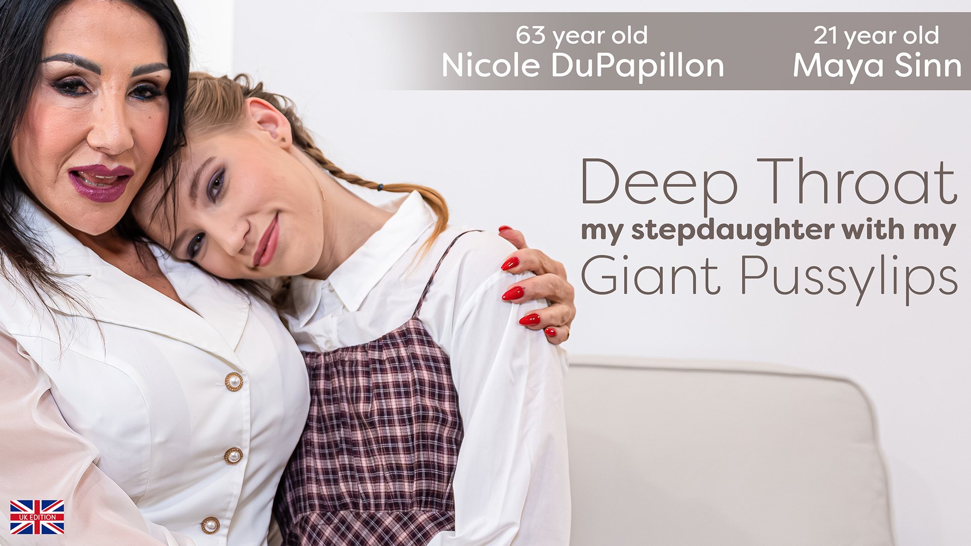 You want kinky old and young lesbian sex? Then check out 63 year old Stepmom Nicole DuPapillon deep throating her horny and beautiful stepdaughter Maya Sinn with her giant wet pussylips! And her horny stepdaughter eats, licks and munches on, around and in between those big flapping lips!
