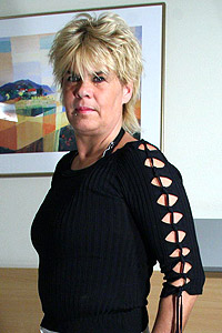 American business woman strips naked and shows off her saggy tits and shaved mature pussy