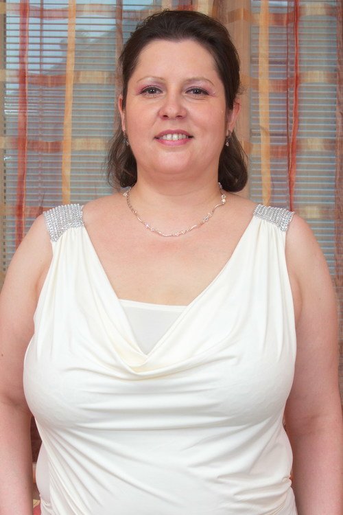 Curvy MILF shows off her big natural tits and fucks her shaved pussy with a glass dildo