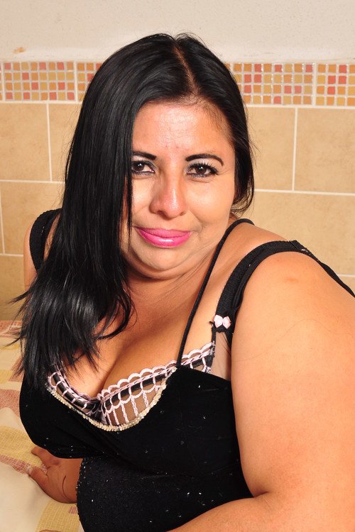Curvy big tits mature latina showing her big wet hairy pussy