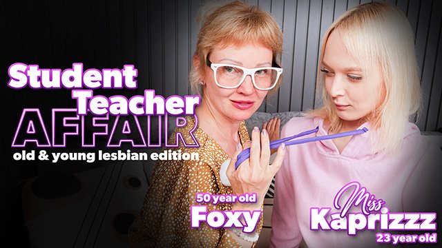 23 year old studen Miss Kaprizzz gets into a lesbian love affair with her 50 year old teacher Foxy