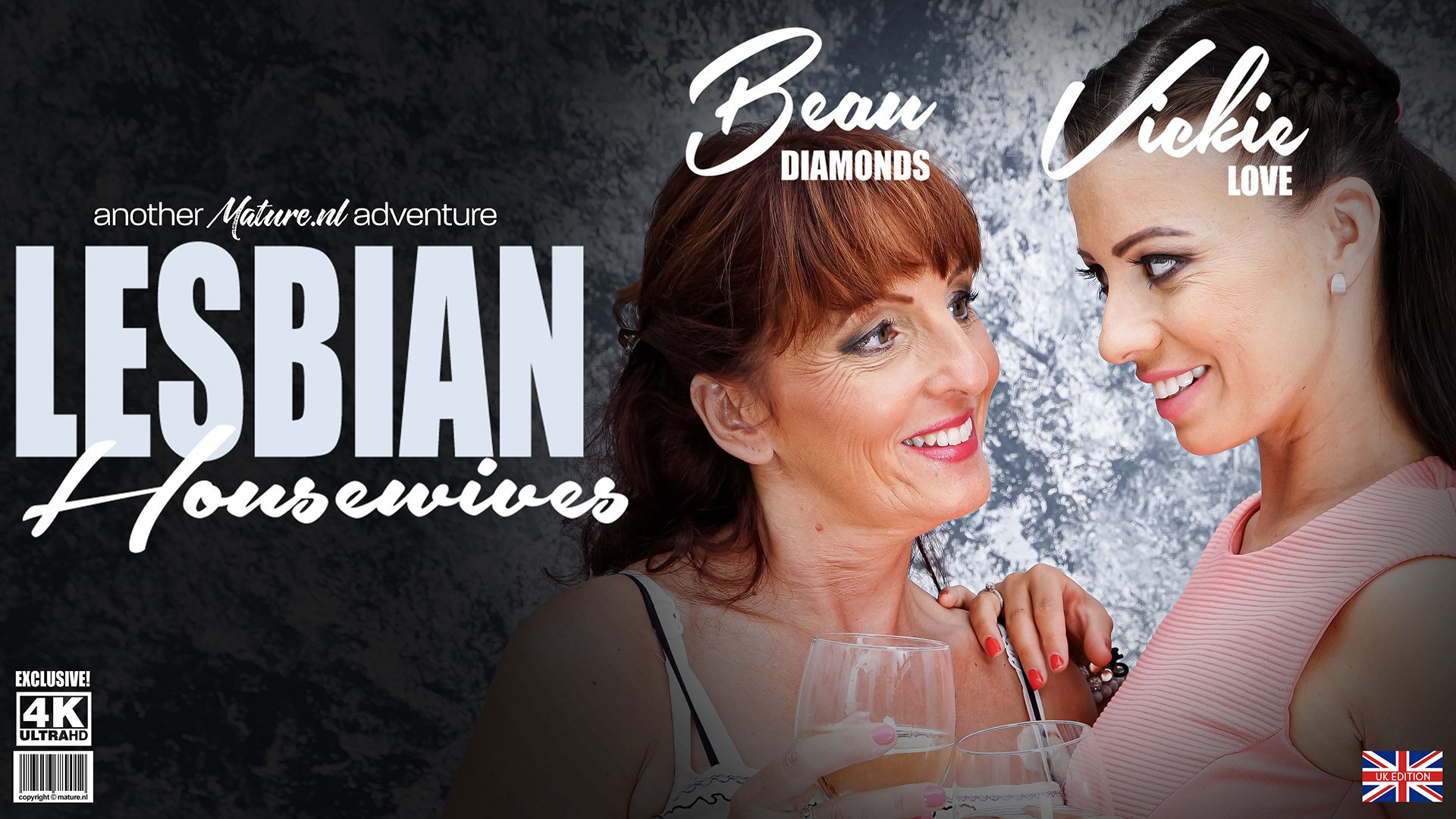 British housewife Beau Diamonds and sexy Milf Vickie Love go down on each other.