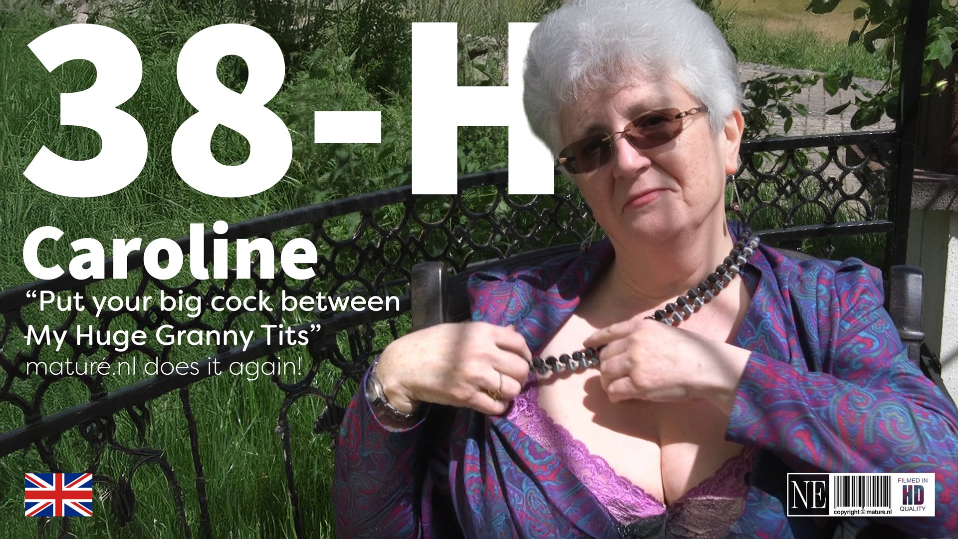 Caroline, a silver-haired British granny with glasses and jaw-dropping 38H breasts, takes you into her garden for a solo show you won’t forget. With her colorful robe barely holding her curves, she pulls out her enormous tits and starts squeezing them together while moaning and talking dirty. She fantasizes about a big cock between her soft, saggy tits, but this solo is all about tease, titplay, and filthy talk. A true Mature.nl like classic for lovers of huge natural tits, confident GILFs, and outdoor solo action, all filmed in crisp HD.