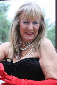 Kinky blonde woman with a pantyhose on plays with a big dildo
