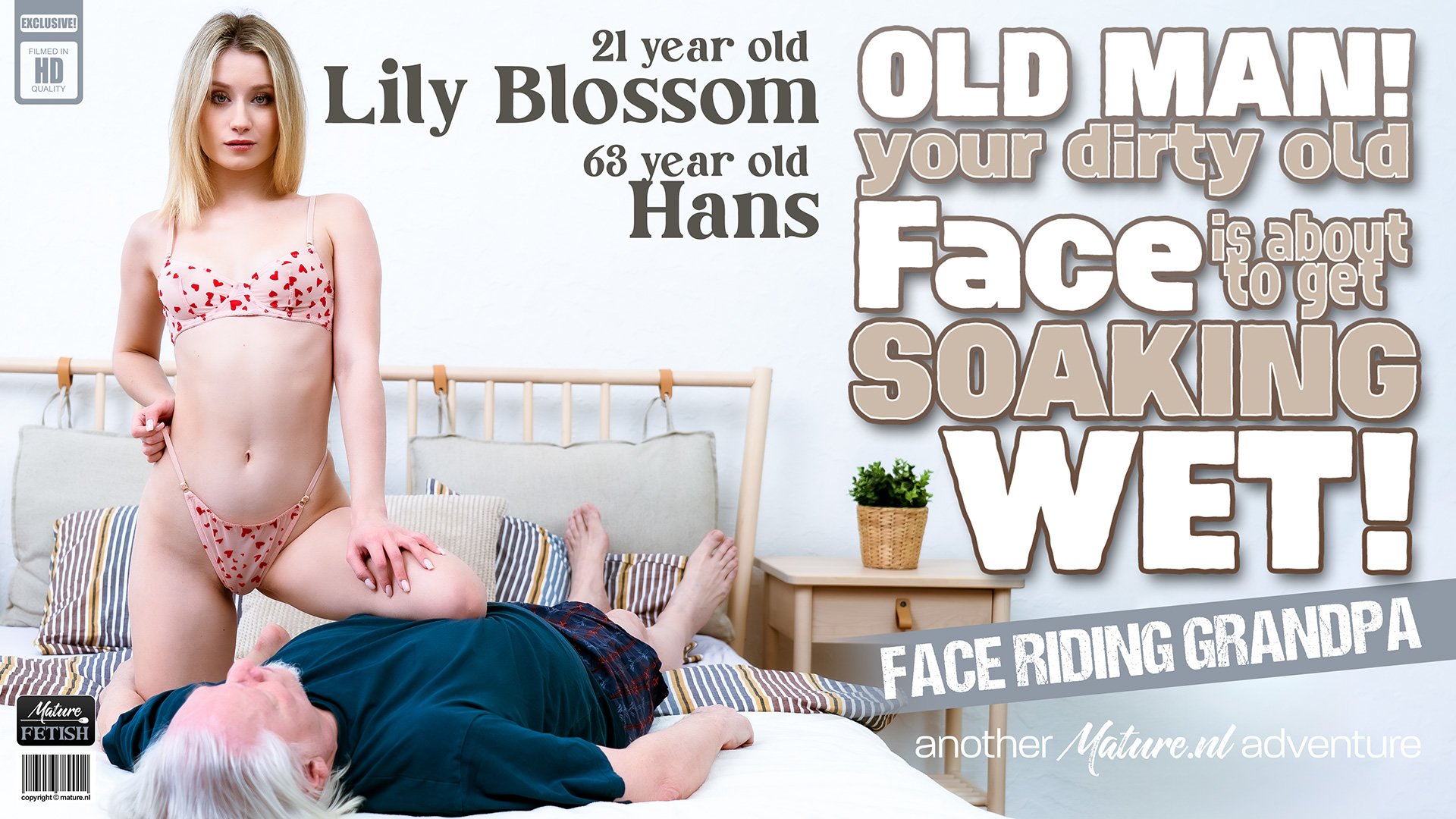 Dirty old grandpa gets his face soaking wet by the hot 21 year old face sitting babe Lily Blossom
