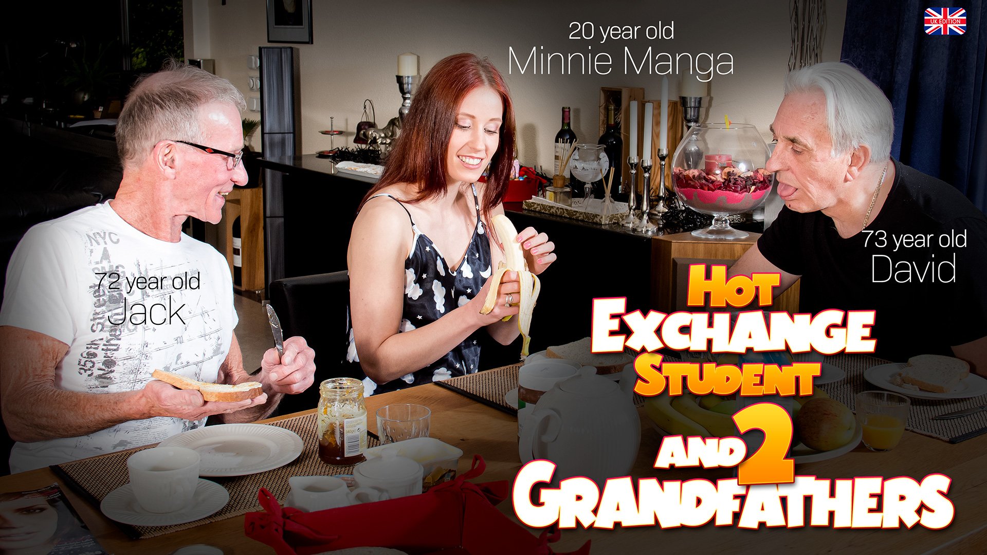 two 70 plus grandfathers have an in house exchange student, the lovely, very hot 20 year old Minnie Manga. But Mini is always horny and she has a wet spot for old cocks.