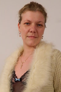 Kinky blonde woman with a pantyhose on plays with a big dildo